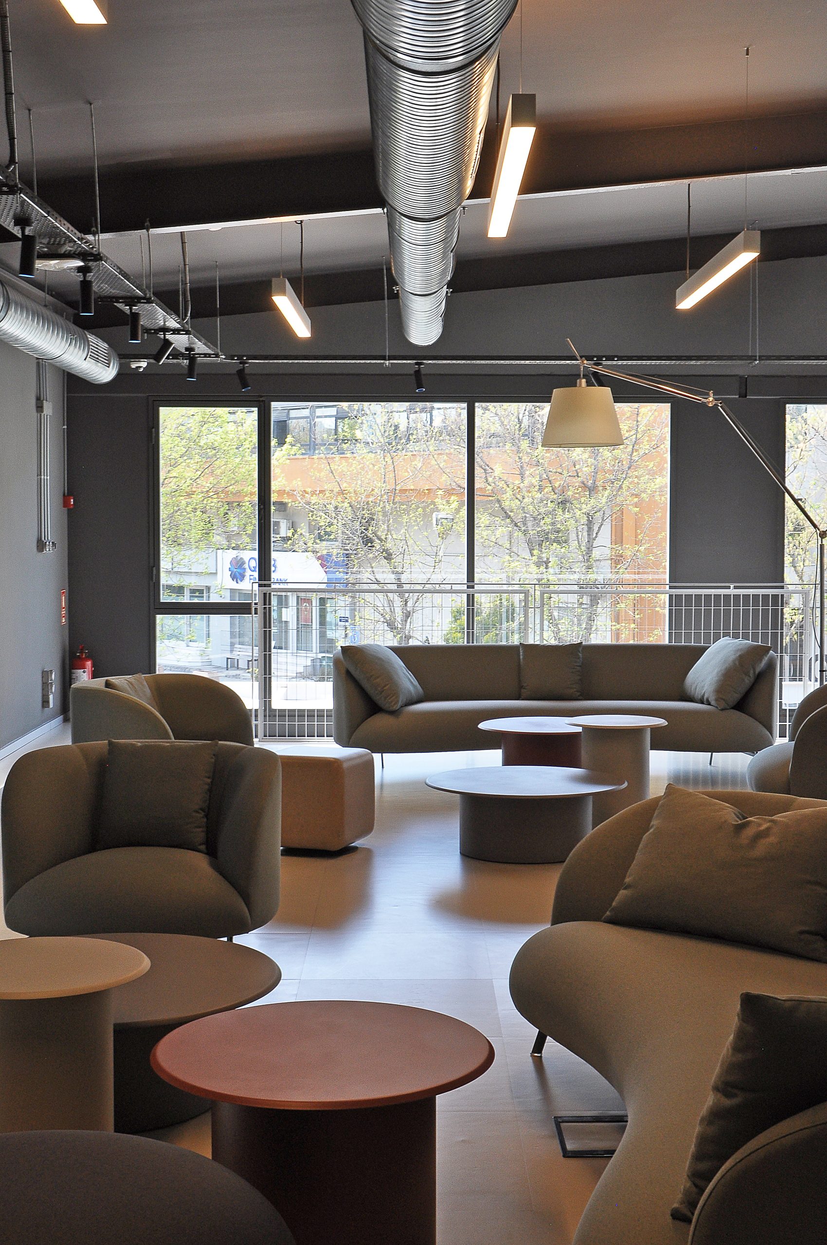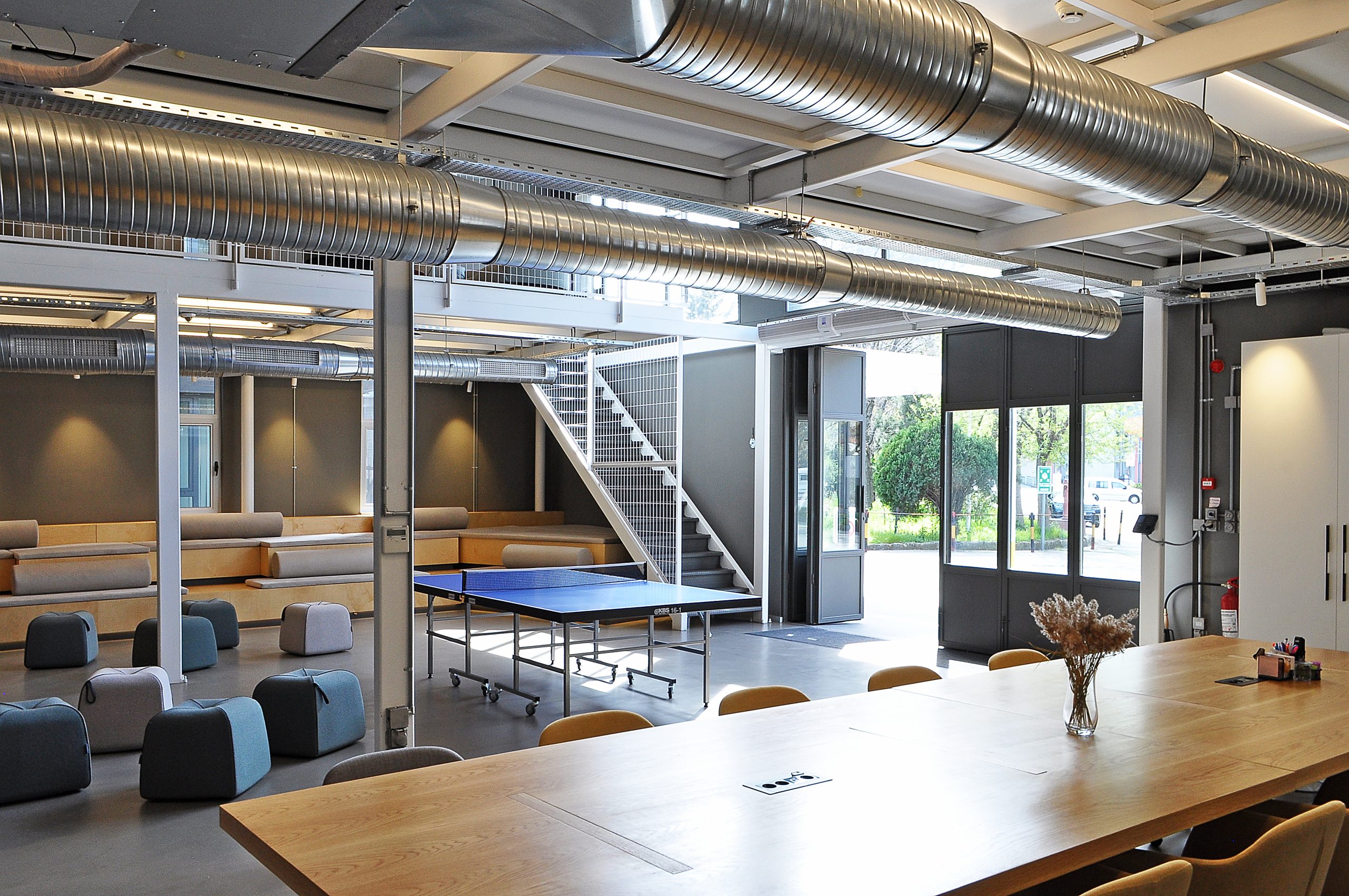 This project transforms a former 400-square-meter industrial hangar in the Istanbul Specialized Free Zone into a flexible and vibrant workplace for an IT company. Once a purely utilitarian structure, the building has been reimagined as an open, human-centered environment that supports productivity, collaboration, and social interaction.